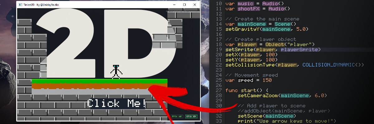 Tiniest2D Engine lets you build and ship 2D games fast with zero friction. One file, one executable, no pipelines. Just pure creation.